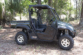 UTVs all meet current and proposed stability standards as being considered by the U.S. Consumer Product Safety Commission. Testing on a banked track, the Level Flight Suspension certainly brought added confidence as this driver made his worldwide debut in a 1000cc UTV. In fact, Hisun is one of the first Chinese manufacturers to bring a 1000cc UTV to market, topping out a range of 14 different UTV sizes that start at 250cc. There are another 10 ATVs to choose from, from the Axis 110 (sport quad) and Forge 110 (with cargo racks) to the Forge 550 and 750, and the Tactic 800 and 1000 EPS, with its 976cc EFI 8-valve V-twin.